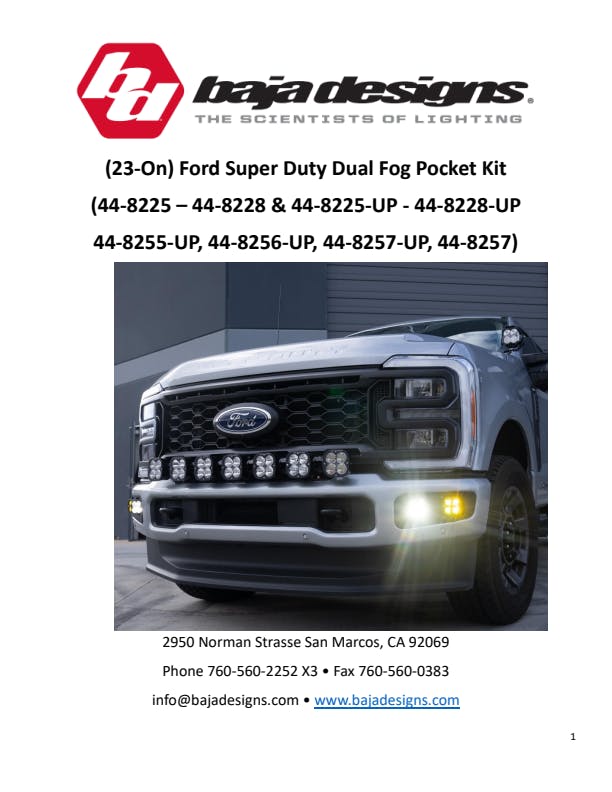 The Baja Designs Squadron Sport "Sportsmen" dual fog pocket LED light kit for the 2023-on Ford F-250/350 Super Duty will separate your truck from the rest of the pack, offering an off-road capable light package to light up the trails. Enhance your stock fog lights with this versatile four-light kit, complete with mounting brackets, an option for a toggle switch or upfitter wiring harness, and all essential components for a hassle-free installation. Our fog pocket kits have been designed specifically for the 2023-on Super Duty trucks, improving visibility on the trail and safety in conditions such as dust, fog, rain or snow. For the optimum visibility while on the trails, the four Squadron Sports offers 3,162 raw lumens each, with a mixture of spot and driving combo lens patterns to illuminate zones 1-4 while on the trails. This makes your driving experience safer and more enjoyable. Have the assurance with our 30-day satisfaction guarantee and lifetime limited warranty, providing unparalleled protection for your investment.