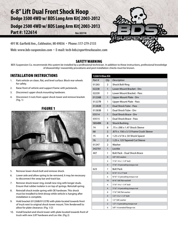 Improve the performance of your 4WD 2003-2013 Ram 2500 or 2003-2012 Ram 3500 by installing dual shocks on your lifted truck. This new shock hoop setup allows for the installation of dual front shocks at each corner for improved dampening capability and added control. Perfect for dual purpose trucks spending time on road and off the beaten path. The dual shock hoop is designed to integrate with both 4 inch and 6 inch BDS radius arm kits and 4-link systems. The dual shock hoop accepts both BDS-5500 shocks or Fox 2.0 performance series gas shocks. Add the BDS dual shock hoop setup to your late model lifted RAM for improved max performance.