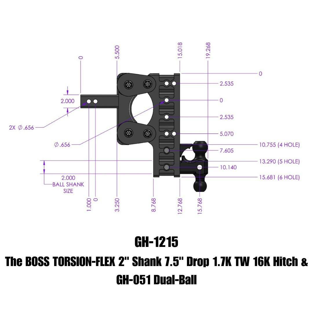 The BOSS TORSION-FLEX 2" Shank 7.5" Drop 1.7K TW 16K Hitch & GH-051 Dual-Ball