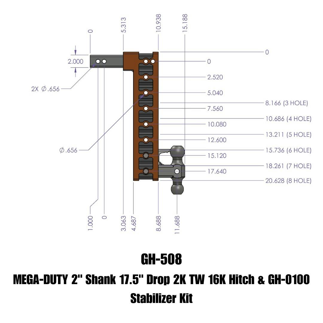MEGA-DUTY 2" Shank 17.5" Drop 2K TW 16K Hitch & GH-0100 Stabilizer Kit