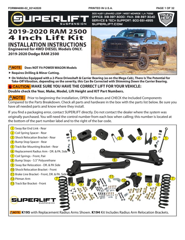 Established in 1975, Superlift remains a pioneer in the industry, and is one of the few suspension companies operated by true truck and off-road enthusiasts. We are passionate about trucks, wheeling and an outdoor lifestyle that go hand-in-hand. We can talk the talk because we walk the walk.This question.... ''What's best for the customer?''... is always at the top of our list in everything we do, from product planning and design to customer service. This simple guiding principal has served us well for decades, and will continue to guide us into the future.We are proud to provide the truck, Jeep and SUV owner products that perform better than advertised. We understand that most people spend the majority of their windshield time on-road, and our designs reflect this. You will be 100% satisfied with our products on-road or off - we guarantee it! Determining what product is right for your vehicle and lifestyle can be a complicated task, especially with so many companies and options to choose from. We urge you to carefully research your purchase. Most lift kits represent a considerable investment, and you will literally live with your choice for years. Talk to fellow off-roaders, and your local automotive specialty shop before making a purchase. We love to talk shop, and we encourage you to give our tech staff a call. Bottom line... if you do your homework, you'll discover that we've done ours.